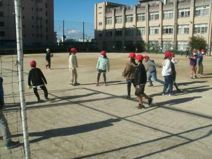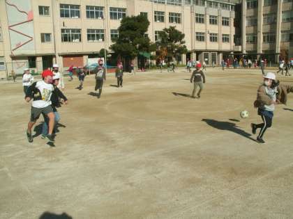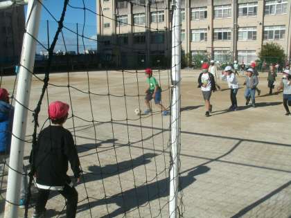 冷たい風が吹いていましたが、子ども達は元気いっぱいです。 サッカーをして遊んでいる子ども達です。