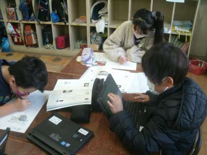 国語科学習の様子です。自分たちの住む大阪の食文化について調べています。