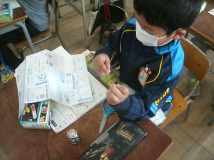理科学習の様子です。今日の学習課題は「ソケットなしで明かりはつくのだろうか」です。