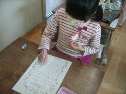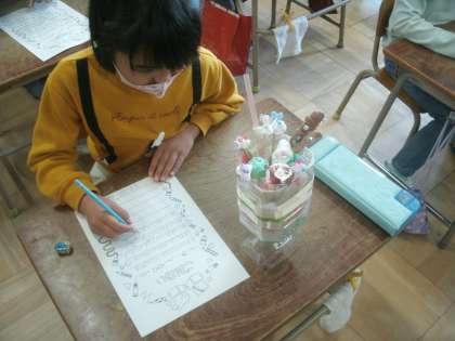 「おいしいパフェ」 1年生(3) 公開日 2021/12/14 更新日 2021/12/14 お知らせ 作品展の案内状を書いています。 作品展は学期末個人懇談会と同時に多目的室で行っています。子ども達の個性あふれる作品をぜひご覧ください。 いいね(0)