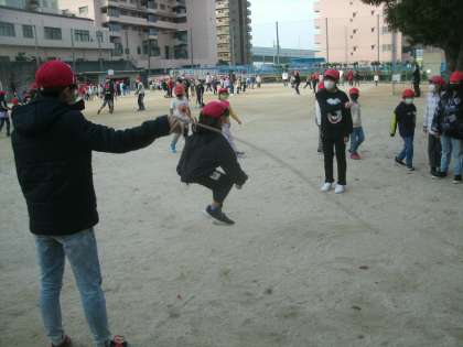 毎週木曜日は「児童集会」があります。今日は長なわで楽しみました。