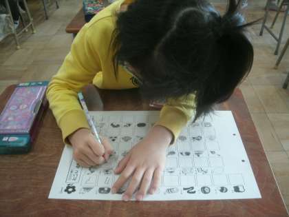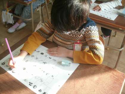 復習プリントに取り組んでいました。間違えないで書けるようになったかな。