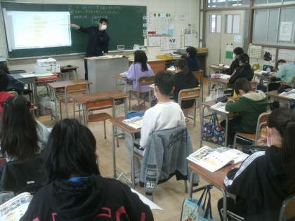 社会科学習の様子です。「これからの工業生産とわたしたち」という単元の学習に取り組んでいます。今日の学習課題は「日本の工業生産の特色について話し合おう」です。