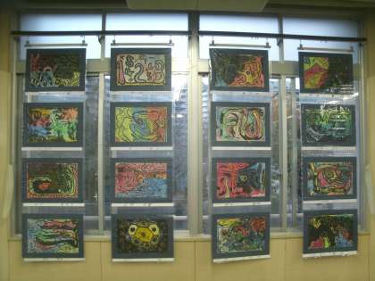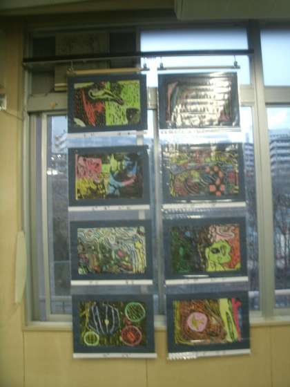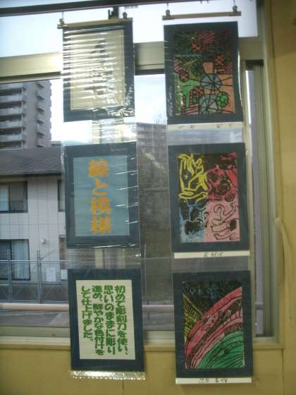 初めての彫刻刀。思いのままに彫り進め、鮮やかな色付けをして仕上げました。