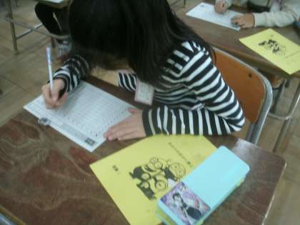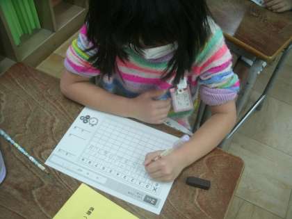 2年生が「100ます計算」に取り組んでいました。