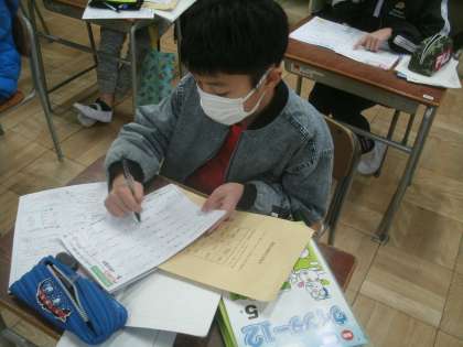 冬休みの課題の答え合わせをしていますね。しっかり仕上げてきてくれたようです。