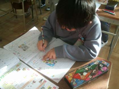 国語科学習の様子です。今日は漢字「市」「店」を学習しています。