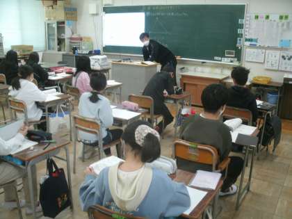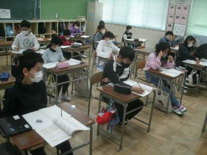 算数科学習の様子です。今日の学習課題は「面積の求め方を考えよう」です。