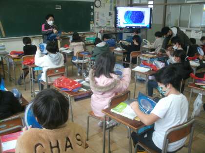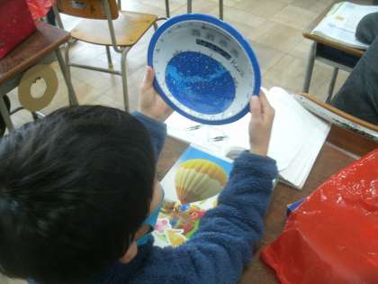 理科学習の様子です。今日は星座版を使って、冬の星座を学習しています。