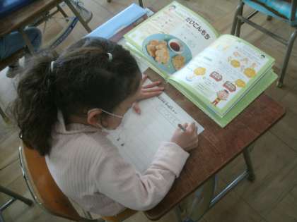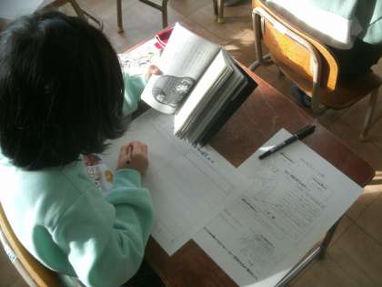 自分が読んで面白かった本や絵本をお友だちに紹介するためのカードを作っています。
