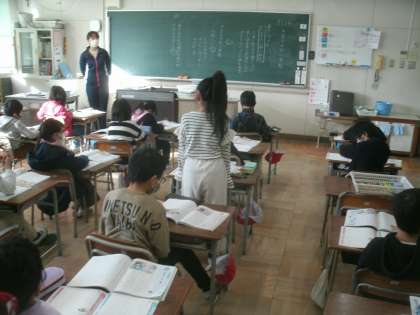 道徳科学習の様子です。教材文「きまりのない学校」を読んで、きまりについてみんなで考えていきます。