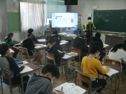 算数科学習の様子です。今日の学習課題は「百分率を使って問題を解こう」です。
