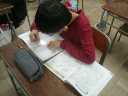 算数科学習の様子です。今日は「三角形の高さと面積の関係」について学習しています。