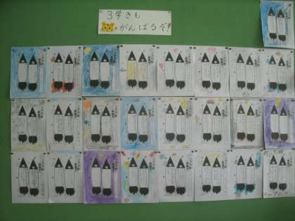 「3学期も頑張るぞ」 2年生 公開日 2022/01/20 更新日 2022/01/20 お知らせ 教室の後ろの掲示板に一人一人が3学期に頑張ることが貼ってありました。 自分が受検する「漢字能力検定」に合格することを目標にしている子どもが多くいました。今年度から始まった「漢字能力検定」ですが、子ども達がやる気を出してくれていることをとても嬉しく思いました。 いいね(0)