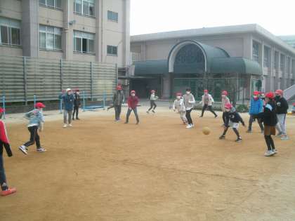 子ども達は寒さに負けずに運動場で遊んでくれています。