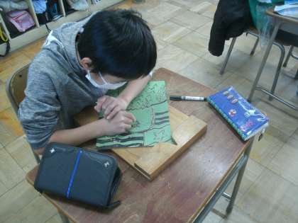 「木版画」 5年2組 公開日 2022/01/20 更新日 2022/01/20 お知らせ 図画工作科の学習で「木版画」に挑戦しています。 彫刻刀を使って、木版画の原板を作っていく時、一番大切なことは何でしょう。それは・・・。 そうです。自分の手を彫らないことです。 いいね(0)