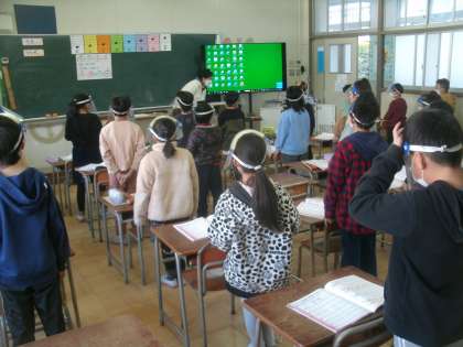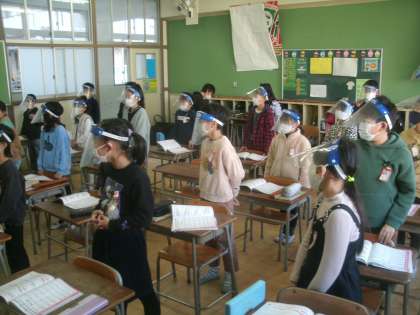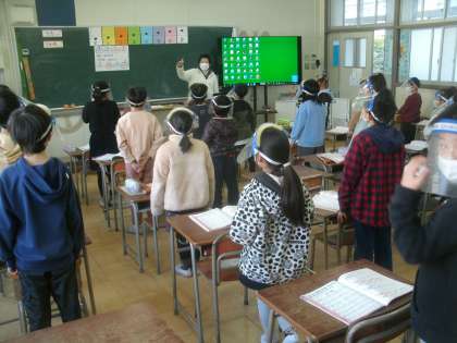 みんなで歌う時はフェイスシールドをしています。一日も早くこんなことをしなくてもいい日がくることを願います。
