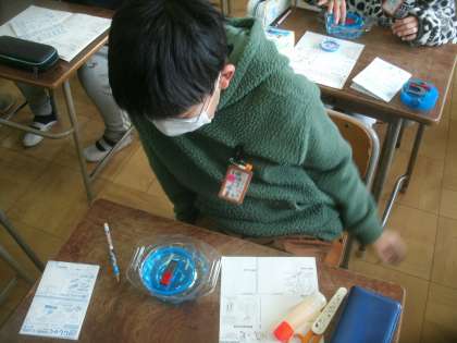 学習の様子 3年生 公開日 2022/02/04 更新日 2022/02/04 お知らせ 理科学習の様子です。「じしゃくのふしぎ」の学習です。今日は棒磁石を水に浮かべて方位磁針のようにN極が北を指すことを確かめています。 いいね(0)