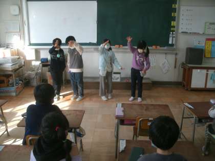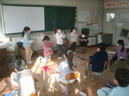 「むかしあそび」 1年生 公開日 2022/02/04 更新日 2022/02/04 お知らせ 生活科学習の様子です。1年生が「むかしあそび」の学習発表をしています。私が子どもの頃遊んでいた「たこあげ」「けんだま」「あやとり」「こま」「おはじき」「ヨーヨー」「べったん」「ビー玉」等は全て「昔遊び」だそうです。リアルタイムにそれで遊んでいた私は「昔人間」ということになってしまうのでしょうか。 いいね(0)