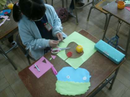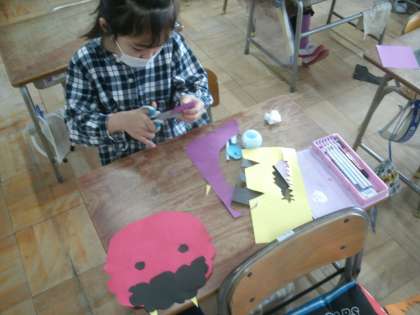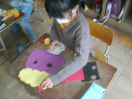 図画工作科学習の様子です。かわいい鬼がたくさん登場しました。