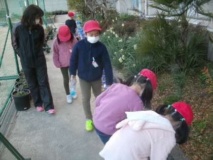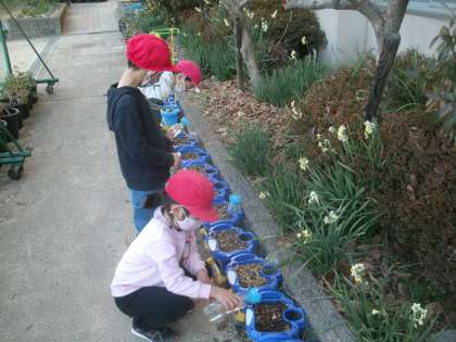 「チューリップ」 1年生(1) 公開日 2022/02/07 更新日 2022/02/07 お知らせ 児童朝会が終わった後、1年生の子ども達が育てているチューリップに水やりをしていました。ずいぶん大きくなってきました。 「大きくなあれ。」 そんなことをつぶやきながら水をやっている男の子がいました。きっと大きく立派な花を咲かせてくれると思いますよ。 いいね(0)