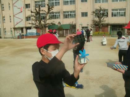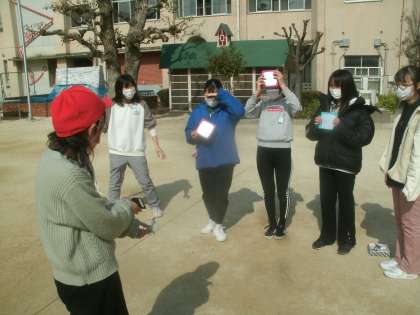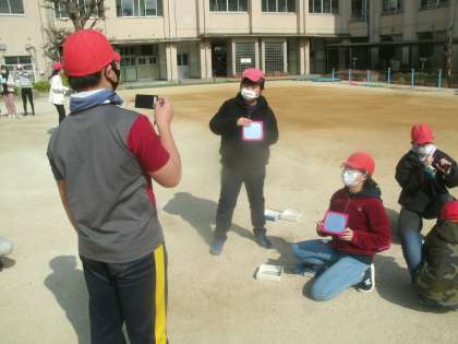 理科学習の様子です。午前中は曇っていたのですが、午後から太陽が顔を出してくれたので運動場で「光電池」の実験に取り組みました。