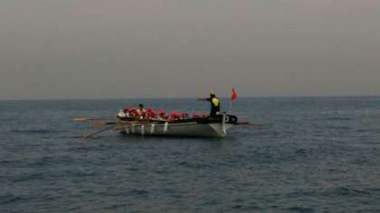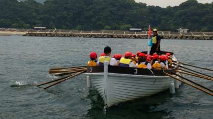 5年生は無事、大阪府立青少年海洋センターに到着し、カッターボート活動に取り組みました。
