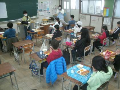 (今日の献立) 豚肉のオイスター焼き 厚揚げと大根の中華煮 デコポン 黒糖パン 牛乳