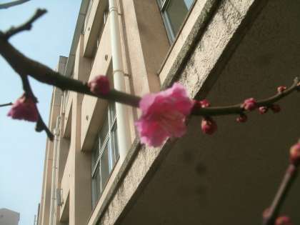 今年の紅梅はたくさん花芽をつけています。今日、最初の1輪が花を開いてくれました。この3年間は3輪程度の花しか開いてくれなかった紅梅でしたが、今年はたくさん咲いてくれそうです。