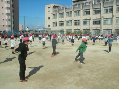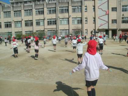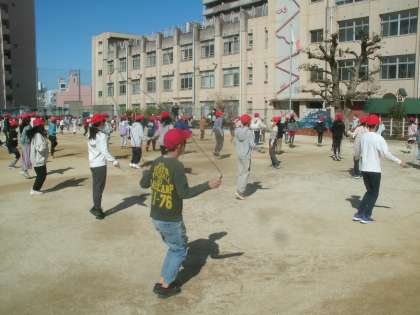 15分休みに全児童が運動場に集まって「短なわチャレンジ」に取り組みました。3分間の連続跳びにも挑戦しました。6年生は最多の3名が残りました。1年生にも1人、最後までひっからずに跳んだ子がいたんですよ。