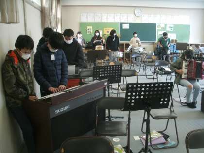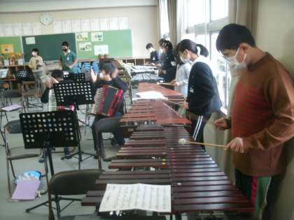 音楽科学習の様子です。6年生の子ども達が合奏「情熱大陸」の練習をしていました。