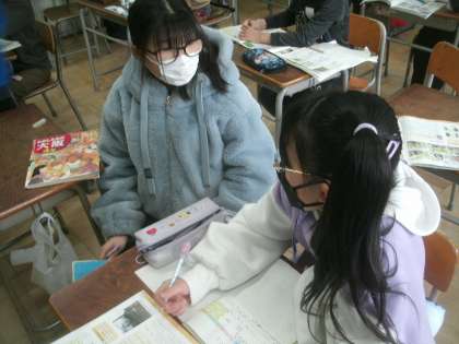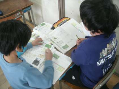 社会科学習の様子です。お互いに意見を交換して考えを深めていきます。
