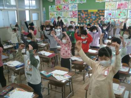 金塚小学校では校歌を手話をしながら歌います。