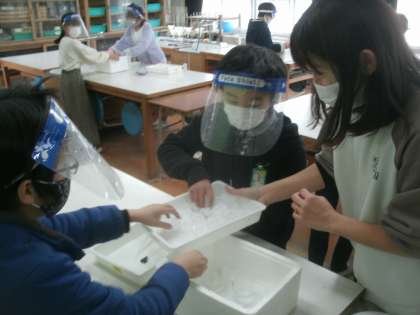 理科学習の様子です。今日は水溶液の実験に取り組みました。