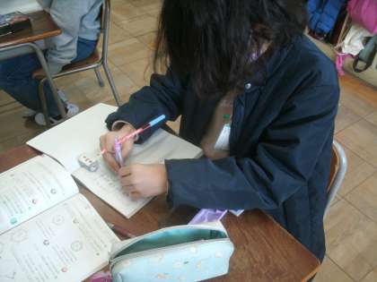 算数科学習の様子です。今日の学習課題は「円をつかって多角形をかこう」です。