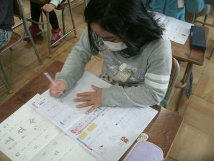 書写学習の様子です。2年生までは硬筆の書写です。3年生になると毛筆の書写が始まります。