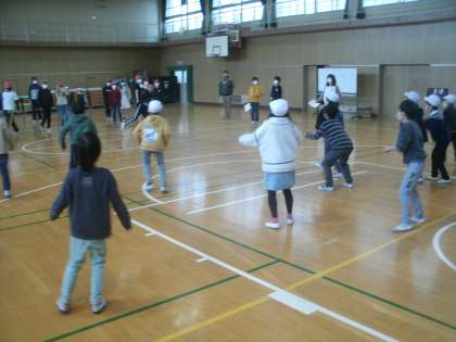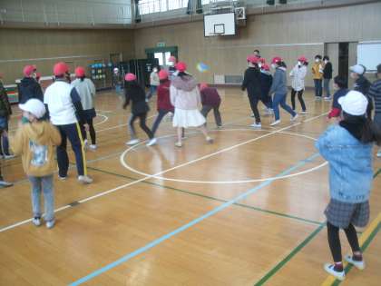 「6年生と遊ぼう」 3年生(1) 公開日 2022/02/24 更新日 2022/02/24 お知らせ 今日は3年生と6年生がドッジボール対決。もちろん6年生には大きな制限がかけられています。内野の幅が3年生の半分です。これは相当厳しい状況です。3年生にとっては狭いエリアに6年生がたくさんいるので当てやすくなります。やはり前半5分は3年生の勝ち。でも、これで6年生のスイッチが入りました。後半5分は本気モードに突入した6年生がトータル21VS16で3年生に勝利。最高学年としての面目を保ちました。 いいね(0)