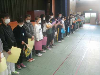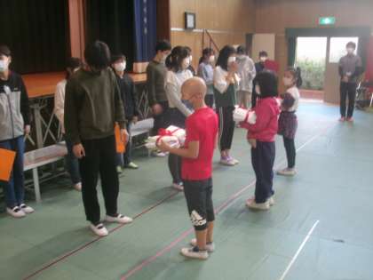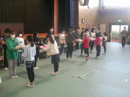 6年生から各学年に心を込めて作った雑巾のプレゼントがありました。