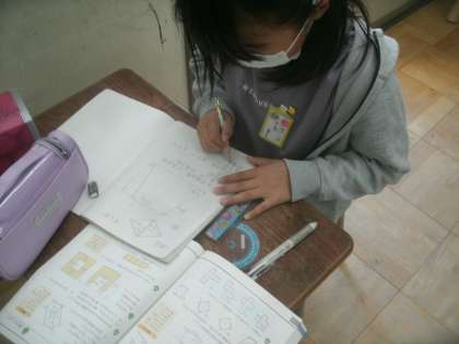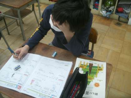算数科学習の様子です。教科書の最後にある補充問題に取り組んでいます。