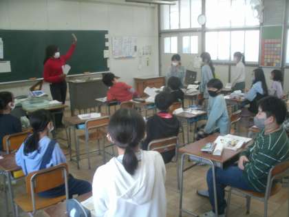 英語学習の様子です。今日は火曜日なのでオリビア・カーター先生と一緒に学習します。