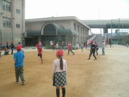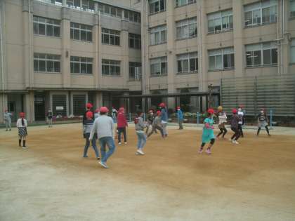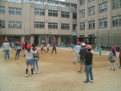 金塚小学校で恒例になりつつある3年生VS5年生のドッジボール対決です。