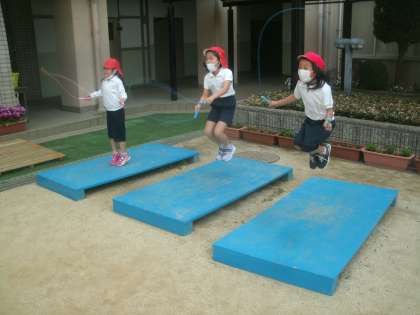 1年生の「なわとびガールズ」の子ども達。「はやぶさ」を跳んだりするのでびっくりです。1年生にはまだまだ「なわとびガールズ」「なわとびボーイズ」がいるんですよ。
