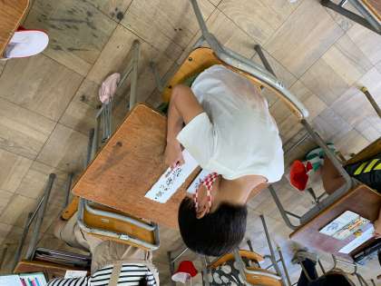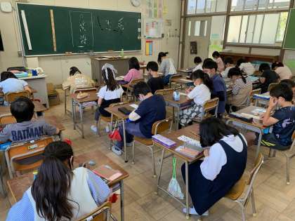 3年生 自分の名前のカードを作っています。みんな漢字で名前を書いています。