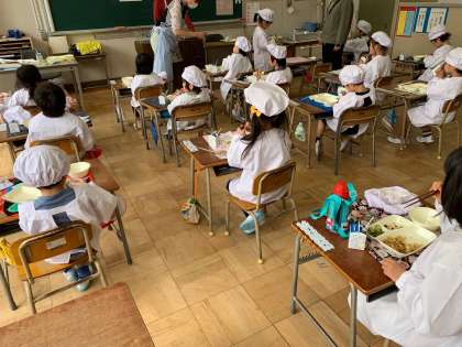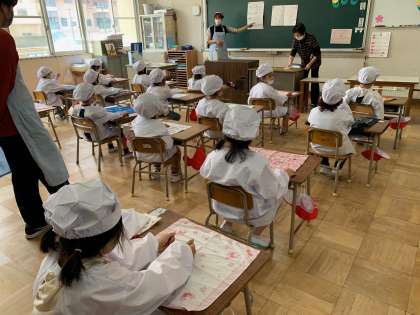 4月11日(月)給食 公開日 2022/04/11 更新日 2022/04/11 お知らせ 1年生 小学校での初めての給食。給食エプロンを着て、自分たちで準備します。 今日のメニューは、黒糖パン・焼きそば・きゅうりのしょうがづけ・まめこんぶ・牛乳です。 いいね(0)