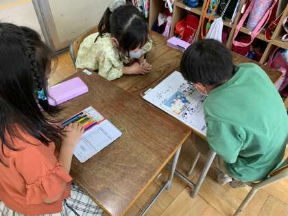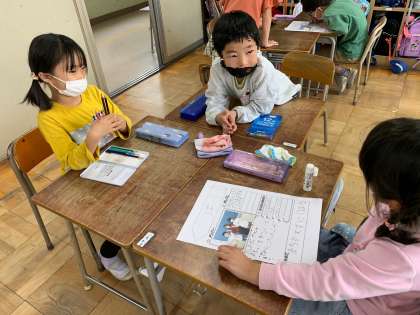 2年 係活動 係に分かれて、活動内容を話し合っています。