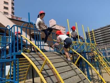 今日も暑くなりました。 コンビネーション遊具もさわるとあたたかかったです。