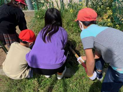 今日は、雑草ぬき、土おこしなどの作業をしました。