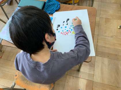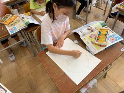 ふしぎなたまごは、どんなかたち、どんないろか想像します。そして、中から生まれるお話を考えながら描きます。