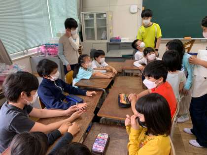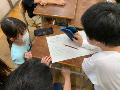 わくわくグループ活動4 グループのめあてを6年生が相談してまとめています。 黄グループ