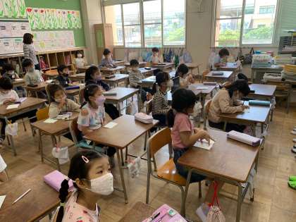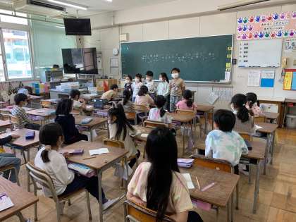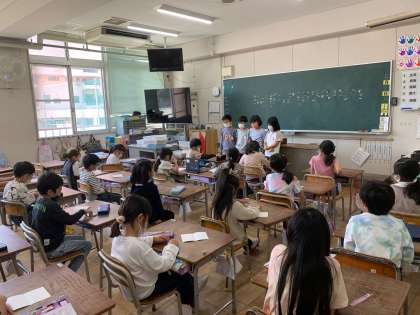 体育のボール運動のグループリーダーを決めています。多くの子どもが立候補しました。「みんなが楽しめる。」「おもいやりのある」などそれぞれがリーダーになったらこういうチームにしたいということを話しています。みんなは、話を聞いてリーダーを決めます。